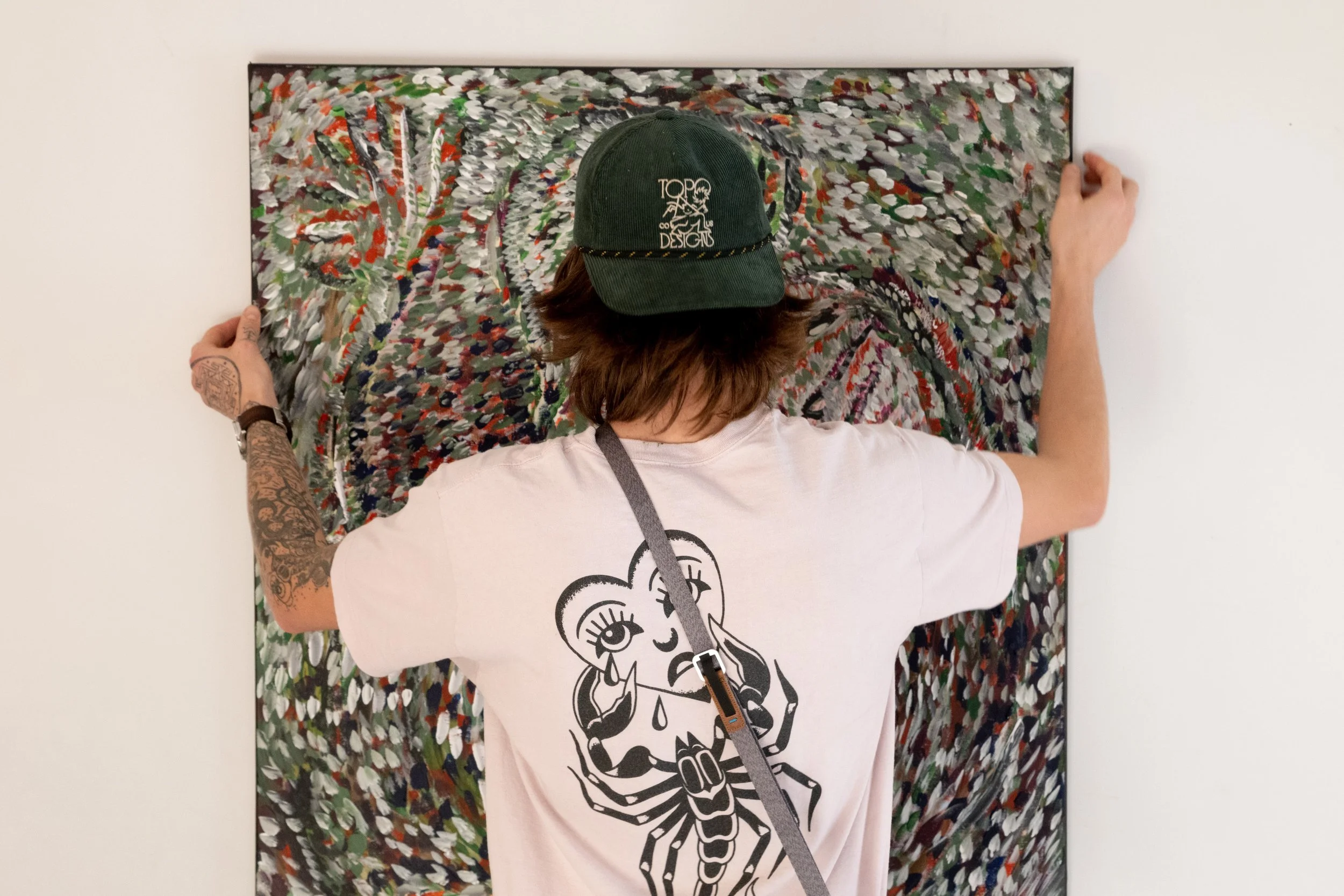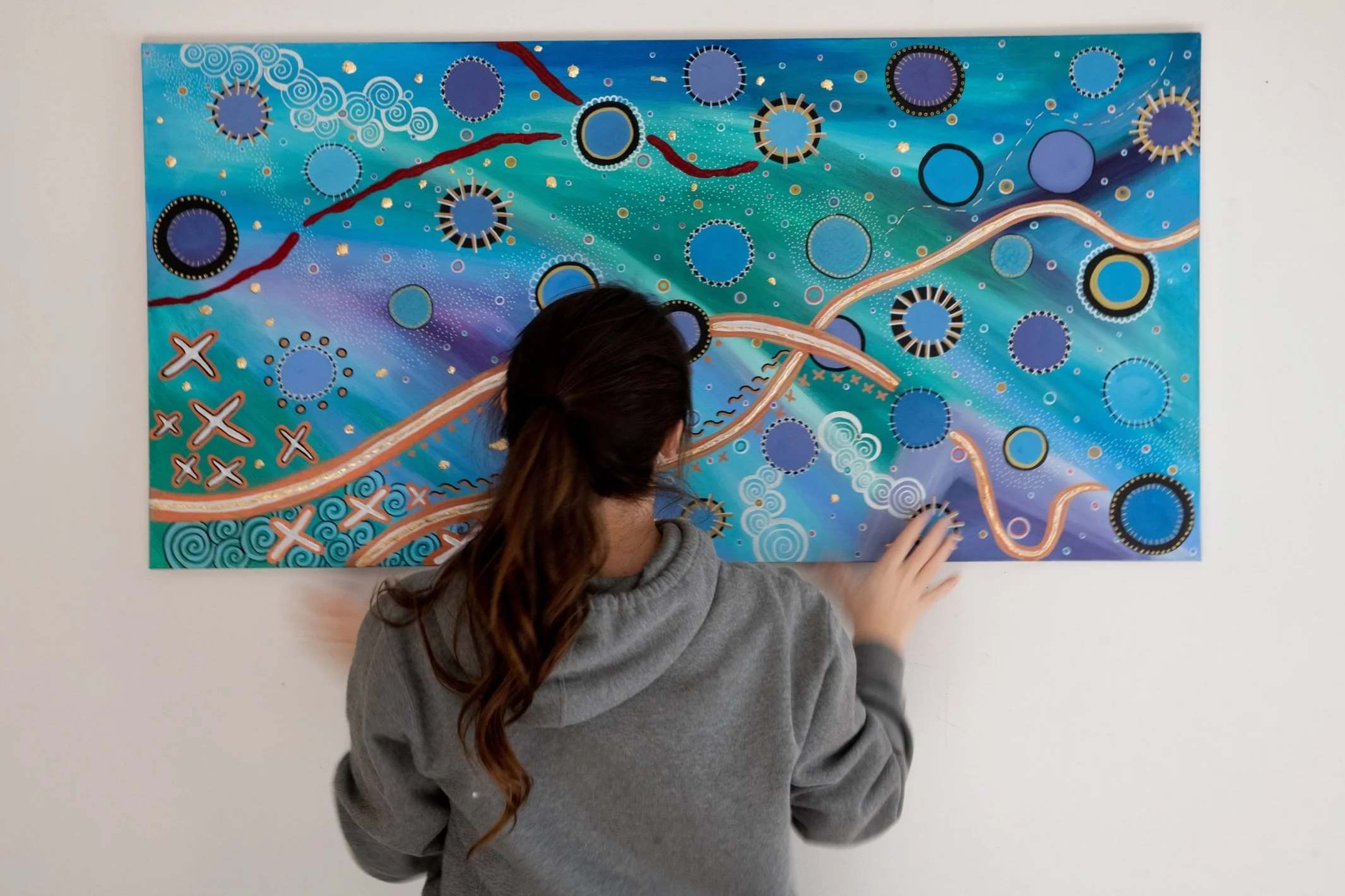 We’re a husband and wife duo who create large-scale abstract paintings — works driven by color, emotion and a dialogue of intuition. While we paint side by side, she also works on a smaller scale as a metalsmith, crafting one-of-a-kind, handmade jewelry. From canvas to metal, our work is about connection, contrast, and the joy of making.